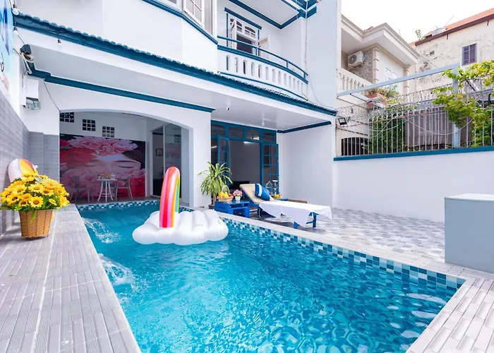 Offering a Jacuzzi and a sauna, the beachfront Amy Villa 16 - Bida - Karaoke - Phong Xong Hoi - Ghe Massage - Gan Bien Vung Tau is located just 1.8 km from the Front Beach Park. Offering a swimming pool and a pool cover, this 5-bedroom villa is nestled in a beach area of Vung Tau.